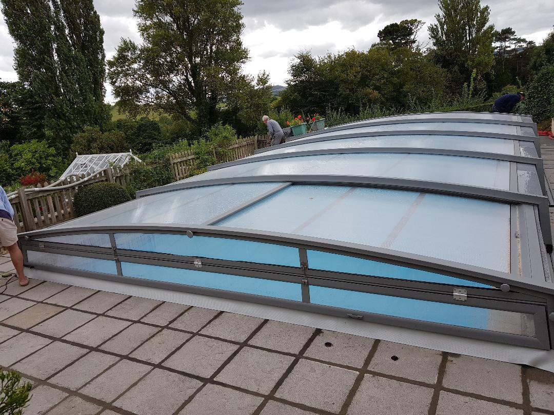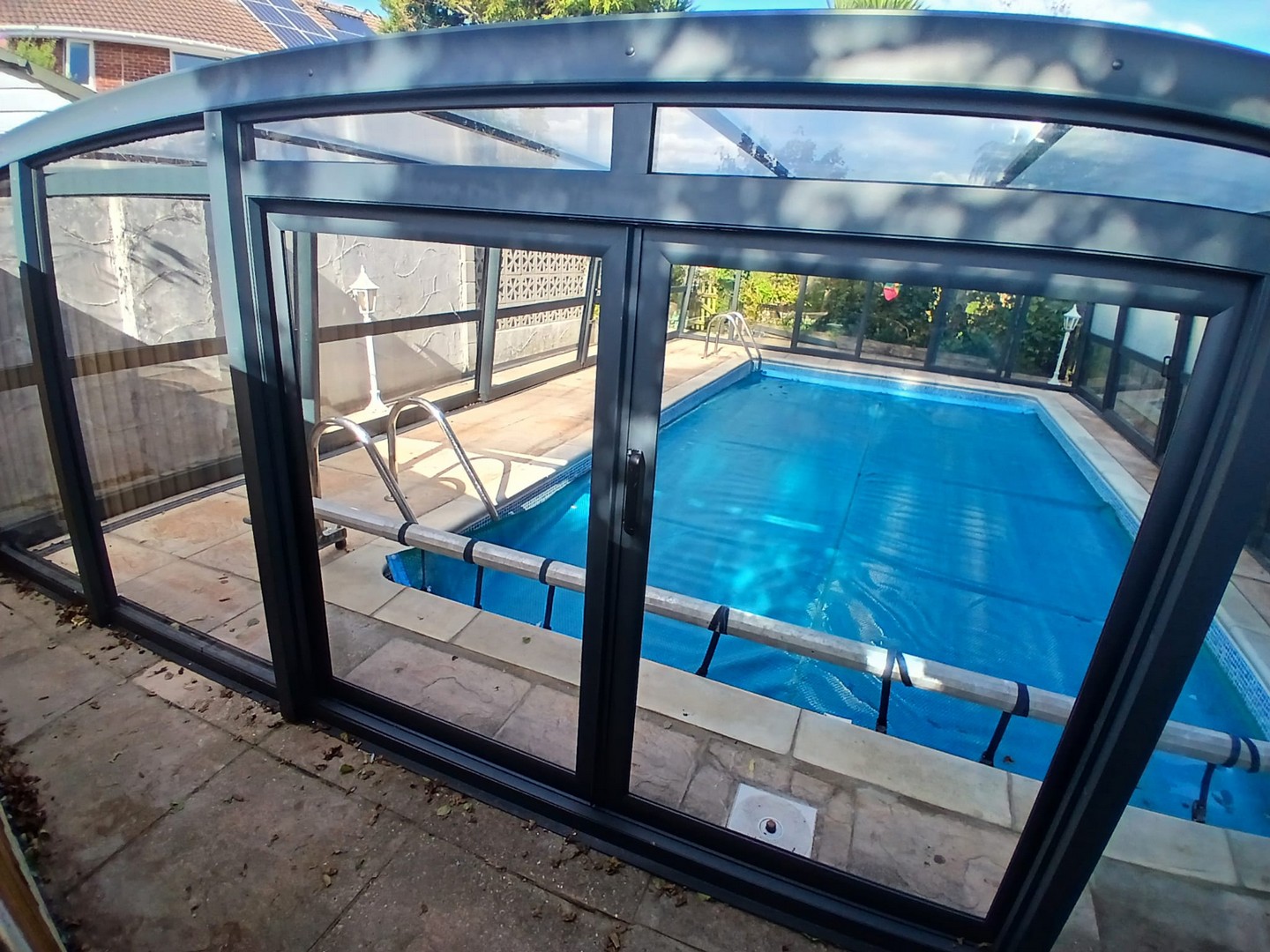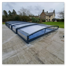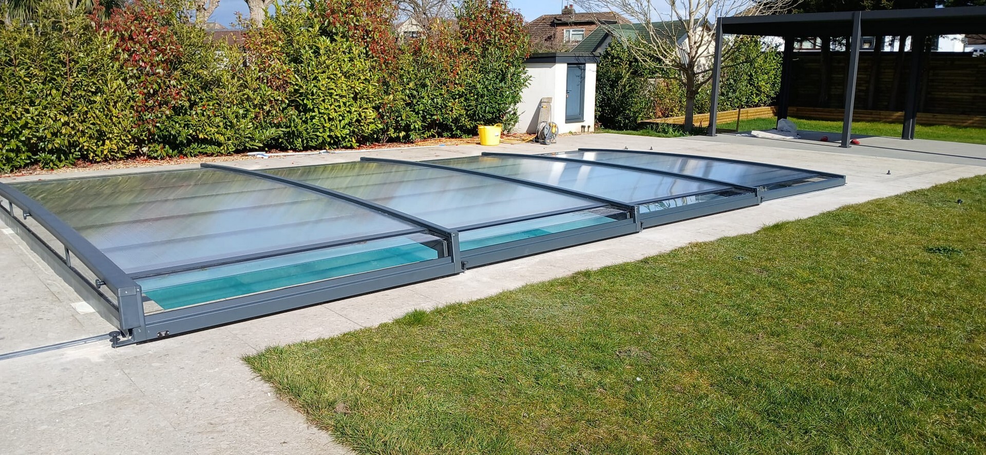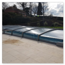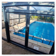 We supply low, medium height and full height sliding pool enclosures. They can be operated manually or electronically.