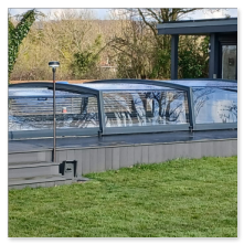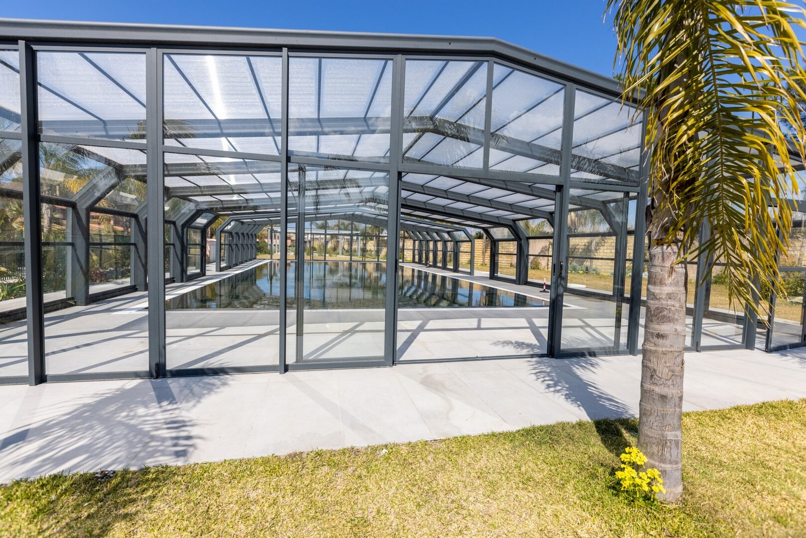 Neither harmful UV rays during hot summer days nor the cold arctic air in winter can get into your pool enclosure and spoil your fun. One of the main benefits of having a retractable pool enclosure is that it reduces pool maintenance. You have no debris, leaves, sticks or dirt to remove, skimming or vacuuming. The pool area stays clean and tidy, without the constant need for manual maintenance. Thus, becoming a distant memory. You will have more time to spend enjoying your pool area and a lot less time maintaining it.