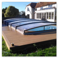 Attractive and effective, Mobile Pool Decks can fit most pools. They are perfect if you are low on space, as when the pool is covered you can use it as an additional patio, and as a pool deck when the pool is uncovered! Sliding Swimming Pool Decks have the ability to protect your pools from all bad weather and help retain heat.