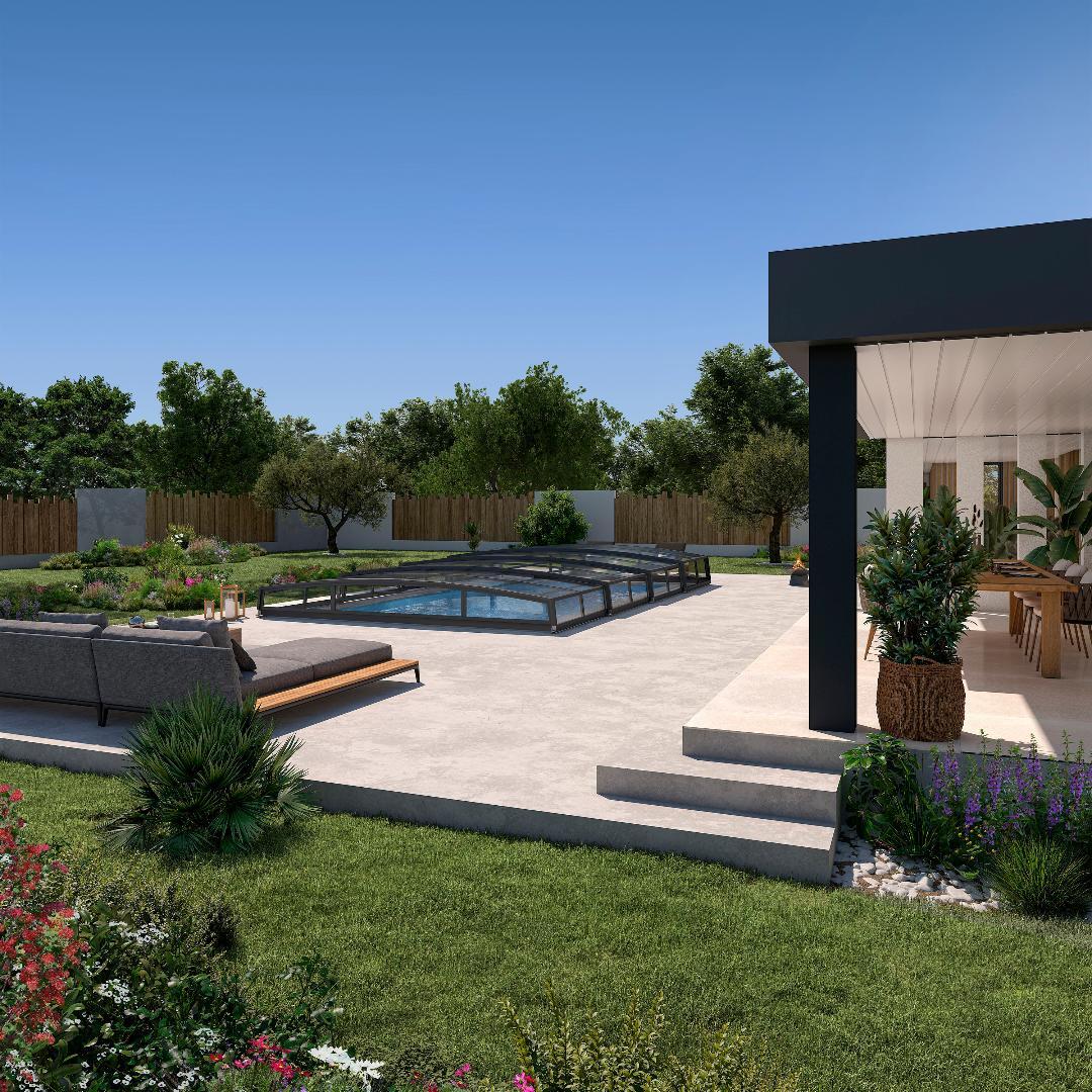 Basic retractable enclosure all glazed with 8mm twin walled clear polycarbonate Colour Anthracite Grey Ral 7016.