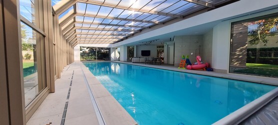 We design, supply and fit made to measure half swimming pool enclosures throughout the UK.