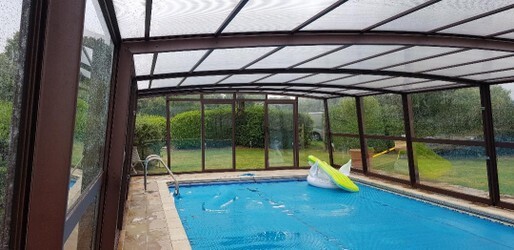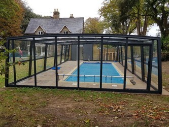 These can be fitted against buildings and walls as well as being a free standing structure. They can be fixed or retractable. High swimming pool enclosures allow you to walk under the pool enclosure or even create a space similar to having a conservatory with a swimming pool.
