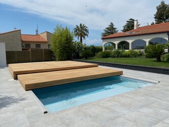 Attractive and effective, Mobile Pool Decks can fit most pools. They are perfect if you are low on space, as when the pool is covered you can use it as an additional patio, and as a pool deck when the pool is uncovered! Sliding Swimming Pool Decks have the ability to protect your pools from all bad weather and help retain heat.